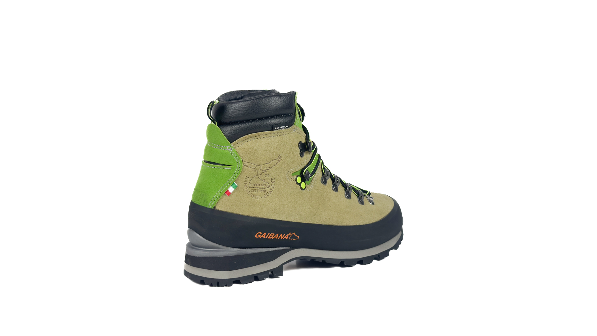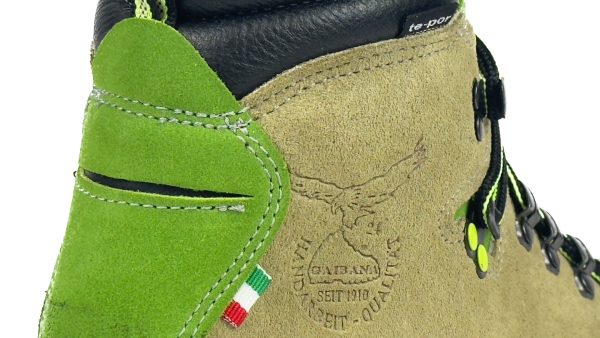 - Fascione di protezione in gomma applicato a mano su tutto il perimetro tomaia