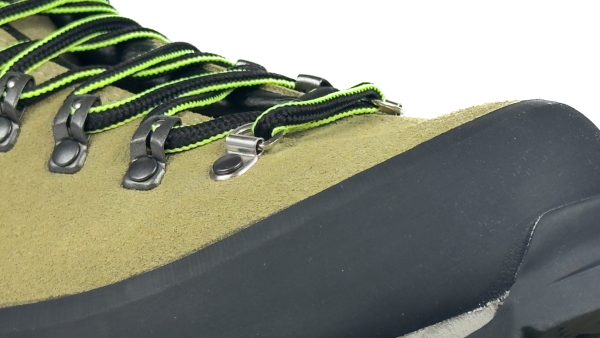 Fascione di protezione in gomma applicato a mano su tutto il perimetro tomaia