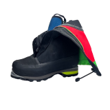 • Ghetta integrata allo scarpone in tessuto ad alta resistenza nella parte bassa e accoppiata a membrana -20 fino all’altezza del polpaccio